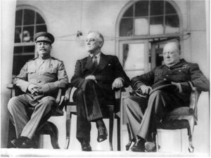 The conference outcome was uncertain. Participation was extended to the countries that had allied in the war against Germany and Japan. Some attendees were questionable. Argentina was suspect. The country had hurriedly declared war against Germany to get in on the meeting and the Soviets suspected she harbored fascist sympathies. Denmark was still occupied by the Nazis with no exile government. Control of Poland was in flux. Unknown to the smaller countries, the Big Three at Yalta had already agreed to certain foundational principles including veto power for the permanent members. Also, at Yalta, Churchill and FDR had agreed to separate membership (and more votes) for Soviet republics of Ukraine and White Russia.
